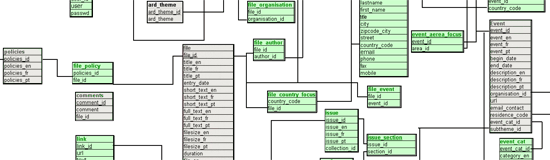 Nous avions la responsabilité d’unifier des données géoréférencées de Géobase avec les bases de données de Greffes des Arpenteurs. Chaque direction territoriale (DT) fournissait une base de données sous différents formats (base maison Access, base format MIC MSSQL ou base format SGG MSSQL, base provenant de MapInfo). Certaines DT avaient plusieurs formats de base de données en fonction des types de plans.