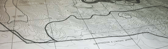 Ce projet consistait à faire une correction planimétrique afin que les éléments de la carte se superposent sur les éléments de l’image satellite Landsat. La surface des jeux de données ne correspondait pas exactement à la définition des limites BNDT-NAD83 des Snrc. Il fallait donc découper les cartes, qui avaient été numérisées sous le système de projection NAD27, selon le système de projection NAD83 (Corlan). Des erreurs de structure, qu’il fallait corriger, étaient présentes dans les jeux de données. Le découpage des cartes consistait à fusionner les données de fichiers adjacents puis d’en extraire le jeu de données principales conformément à la définition BNDT-NAD83 du Snrc. La tâche a été réalisée soit en découpant les occurrences d’entités dépassant les limites du Snrc ou en insérant les occurrences d’entités des jeux de données adjacents là où la couverture était incomplète.